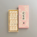 「花」の文字が入った落雁を、典雅な包み紙にて1枚ずつお包みしたうえ6枚ずつの真空パックにしております。お茶会のお菓子をはじめご家庭でのティータイムにも喜ばれております。